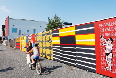 Ilkka Väättin osuus yhteisteoksessa Väliaika, joka rajaa työmaa-aluetta Tampereen Vuoreksessa. Kuva: Aino Huovio.