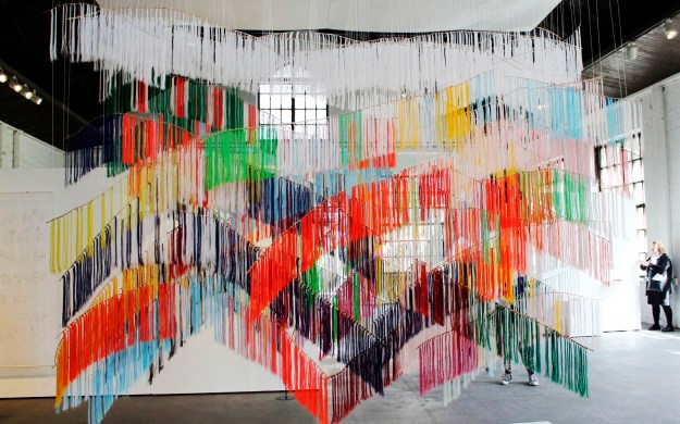 Outi Pieski sai keväällä Suomen taideakatemian palkinnon, johon sisältyy julkaisu ja yksityisnäyttely Espoon modernin taiteen museo EMMAssa vuonna 2018. ”Our land, our running colours” -teos on tehty saamenpuvun huivilangoista.